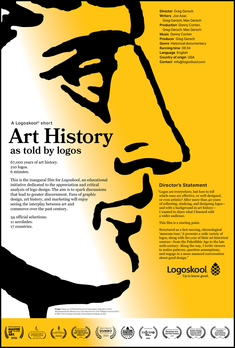 We’re excited to announce that our inaugural film Art History as told by logos has already been selected in 34 film festivals, with screenings in seventeen countries, and has earned two European category-awards (as of March 15, 2026).